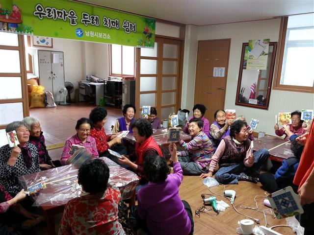 치매예방 프로그램인 ‘우리 마을 두레 치매쉼터’은 두레사랑방이 운영되는 경로당 중 보건소 ‘싱싱생생 건강교실’ 프로그램이 운영되지 않는 지역 노인들을 대상으로 실시한다.