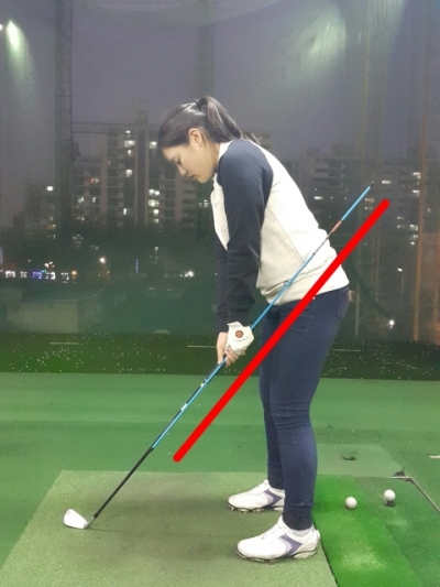 스윙 플레인은 볼을 정확히 멀리 보내기 위해서 꼭 수행해야하는 동작 중 하나가 된다. 좋은 스윙과 좋은 결과는 좋은 스윙 플레인에서 나온다는 것을 알고, 백스윙 시 사진2와 같이 스틱이 가리키는 방향이 볼과 발 사이를 보는 것이 바람직하며, 다운스윙 시 스틱이 바라보아야 하는 곳은 볼보다 좀 더 위쪽을 바라보아야 좋은 스윙 플레인이 된다.