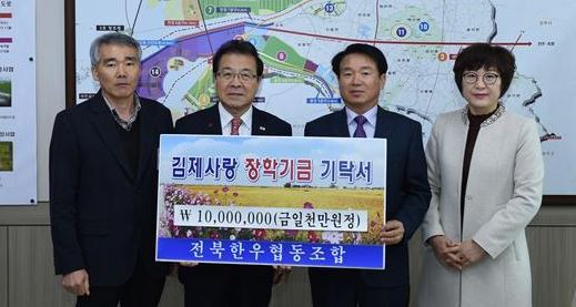 전북한우협동조합은 도내 760여 한우 사육농가를 중심으로 지난 2001년 설립됐으며, 2005년부터 지역사회 인재양성을 위해 해마다 김제시에 장학금을 기탁해 오고 있다.