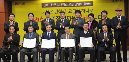 ▲ 전주시와 완주군의 시내버스 요금 단일화 협약식 모습.