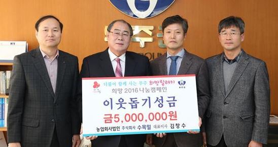 농업회사 법인 주식회사 수목일(펠릿공장 위탁업체) 김창수 대표도 500만 원을 무주군 측에 전달해 왔다.