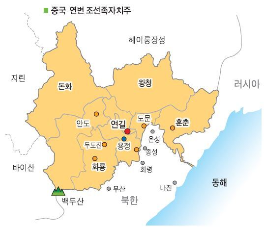 연변이 우리에게 더 특별한 데는 일제강점의 민족 수난기에 모국의 최후의 보루였다는 점이다. 일제의 압박을 피해 많은 이들이 이곳을 우리 땅으로 삼아 재충전을 했다. 청산리항일전승지·봉오동 항일전승지·일송정 등 독립운동의 근거지로서 많은 유적을 보유한 곳이 바로 연변이다. 연길시에서 자동차로 30분 거리에 위치한 용정시가 그 중심에 있다. 일본 유학 중 항일운동 혐의로 투옥돼 옥사한 윤동주 시인의 생가와 기념관이 그 역사를 웅변하고 있다.