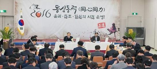 문동신 시장은 “이렇게 시정 발전을 위해 중요한 과제들이 산적해 있고 세계적인 경제위기와 함께 현안 사업이 힘든 고비에 있는 만큼, 지역발전의 걸림돌인 이합집산(離合集散)을 물리치고 2016년 한 해 시민 모두가 ‘동심동력(同心同力)’ 하여 국제·관광·품격 도시로 한단계 더 도약하자”고 당부했다.