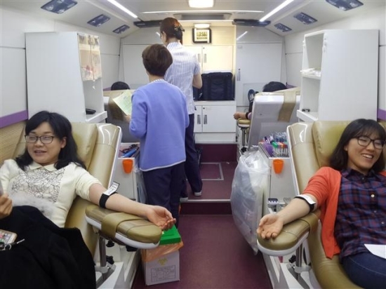 헌혈 운동에 참여하는 학생은 자원봉사 4시간을 인정받을 수 있다.