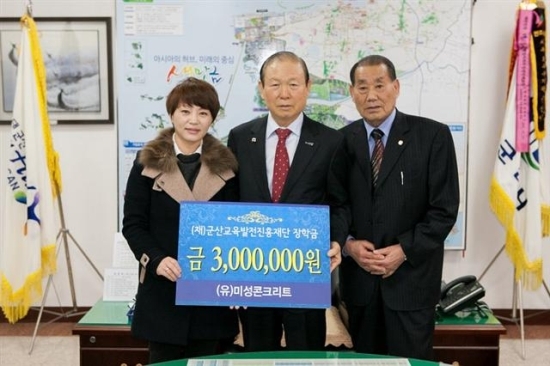 미성콘크리트 김경숙 대표는 이날 “군산시 지역발전을 위한 우수인재 양성에 조금이나마 도움이 되기를 바란다”며 “지역주민과 함께 상생 발전하는 기업이 되도록 노력하겠다”고 말했다.