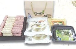 △정3호(두텁떡 5종 24개) 15,400원 △미소1호(찹쌀떡,두텁떡 4종 36개) 24,500원 △솔티1호(찹쌀떡, 두텁떡 4종 64개) 39,500원 △찰떡궁합 21(찹쌀떡, 두텁떡 21개+복분자즙 600ml+미니잔 2개) 15,400원 △모시인절미 2kg(콩가루 별도) 16,000원이다. 문의 532-7722.