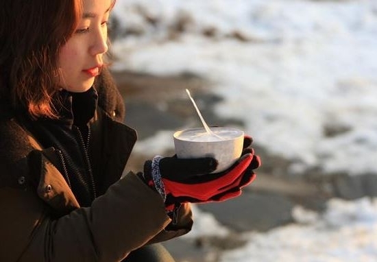 반짝 한파가 이어지면서 진안군 마이산 탑사에 놓인 정화수에 하늘 방향으로 고드름이 솟는 ‘역 고드름’이 피어올랐다.