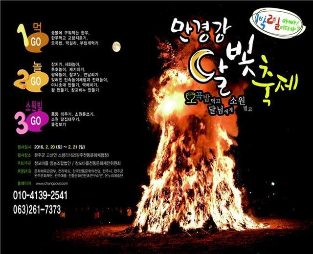정월 대보름을 맞아 한 해의 액운을 막고 행복과 건강을 기원하는 만경강 달빛축제는 가족 단위로 전통 세시풍속을 즐길 수 있는 전통 축제 한마당으로 꾸며진다.