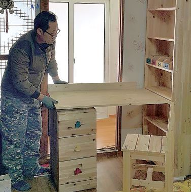 ▲ 고창 심원면 공방 ‘공갗 공성일 대표가 책상을 만들고 있다.