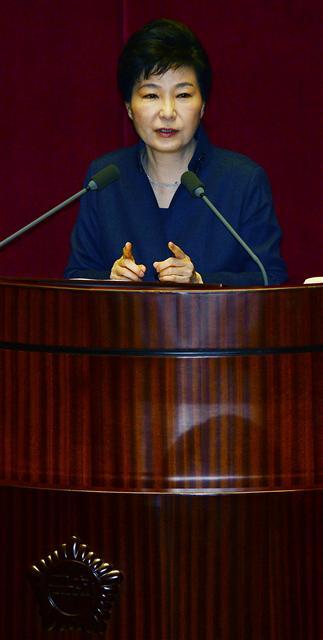 ▲ 박근혜 대통령이 16일 국회 본회의장에서 북한의 4차 핵실험 및 장거리 미사일 발사로 인한 안보위기 등과 관련해 ‘국정에 관한 국회 연설’을 하고 있다. · 연합뉴스