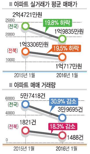아파트 수요 위축, 전북 평균 매매가 '뚝'