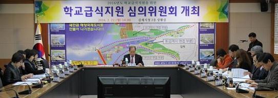 김제시는 지난 22일 상황실에서 김제시 및 김제시의회, 김제교육지원청, 김제영양사회, 친환경 생산농가 대표, 학교급식지원 심의위원회 관계자 등이 참석한 가운데 학교급식지원 심의위원회를 개최, 2016년도 학교급식지원을 위한 무상급식 및 친환경쌀 급식지원, 친환경 농산물 급식지원에 대한 지원규모 및 기준 등 지원계획을 심의·의결했다.