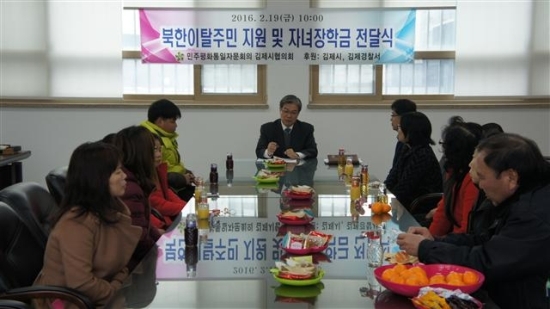 이번 장학금 및 격려금 지원은 북한이탈주민정착지원을 위해 지난해 민주평통 김제시협의회 여성위원 주관으로 물품을 판매한 수익금으로 마련했으며, 김제시와 김제경찰서의 협조하에 7세대에게 총 240만원을 전달했다.