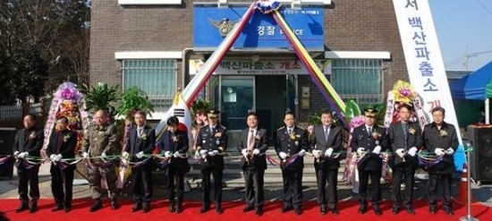 부안경찰서(서장 강현신)는 지난 25일 오전 경찰서장과 지역인사, 주민 등 약 100여명이 참석한 가운데 백산파출소 개소식을 가졌다.