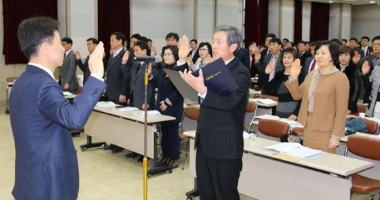 ▲ 지난달 29일 농협중앙회 전북지역본부 상생관에서 열린‘2016 상반기 상호금융 사업추진방향 전략회의’에서 참석자들이 금융사기 근절 실천결의를 다짐하는 선서를 하고 있다.