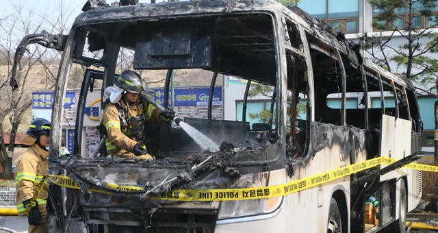 경찰에 따르면 버스 운전기사와 상조회사 직원은 차량을 주차해 놓고 인근 식당에서 식사를 하던 중 5분 뒤 ‘불이났다’는 주변 소리를 듣고 긴급히 소화기를 들고 버스 내부로 진입, 진화작업을 나섰지만 불길을 잡지 못한 것으로 알려졌다.