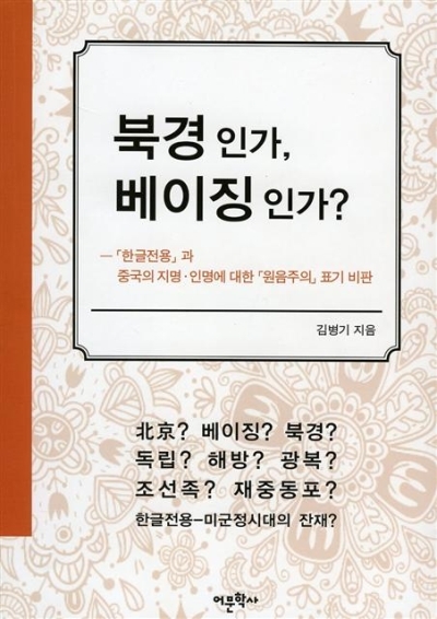 김병기 전북대 중문과 교수가 쓴 <북경인가, 베이징인가?> (어문학사)는 중국의 지명·인명에 대한 원음주의 표기법을 비판하고, ‘한글전용’의 문제점을 지적한 책이다.