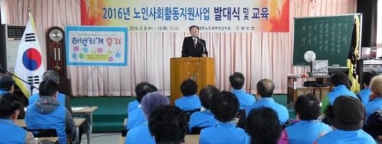이날 교육은 노인 사회활동 지원사업으로 노·노케어사업, 경로당관리원, 경로당 코디네이터 등 총 4개 사업 5억 6000만원의 사업비로 추진되며 이를 통해 어르신 일자리 창출 및 소득안정에 도움이 될 것으로 기대된다.