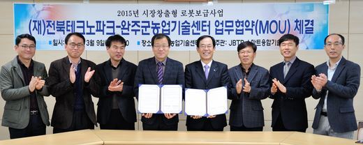 완주군 농업기술센터와 (재)전북테크노파크는 지난 9일 완주군 농업기술센터에서 전북도 농업용 로봇 산업육성 및 보급 활성화와 선진 농업생태계 조성을 위한 업무협약을 체결했다.