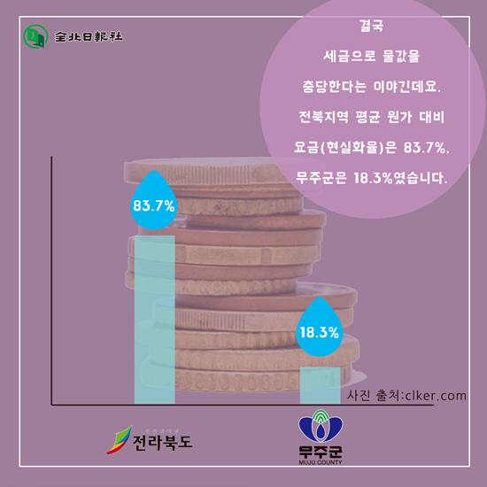 결국 세금으로 물값을 충당한다는 이야긴데요. 전북지역 평균 원가 대비 요금(현실화율)은 83.7%, 무주군은 18.3%였습니다.