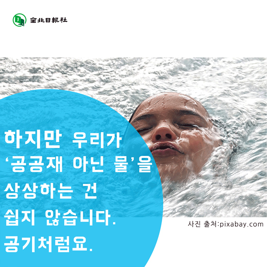 하지만 우리가 '공공재 아닌 물'을 상상하는 건 쉽지 않습니다. 공기처럼요.