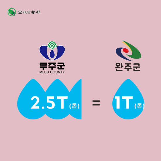 무주군 2.5T(톤) = 완주군 1T(톤)