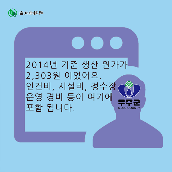 무주군 관계자 "2014년 기준 생산 원가가 2,303원 이었어요. 인건비, 시설비, 정수장 운영 경비 등이 여기에 포함됩니다."