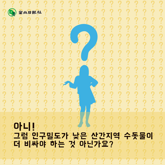 아니! 그럼 인구밀도가 낮은 산간지역 수돗물이 더 비싸야 하는 것 아닌가요?