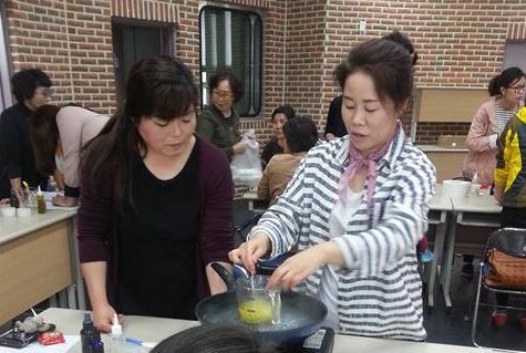 ▲ 7일 임실군보건의료원에서 열린 ‘아토피 케어용품 교실’에서 참가자가 실습교육을 받고 있다.