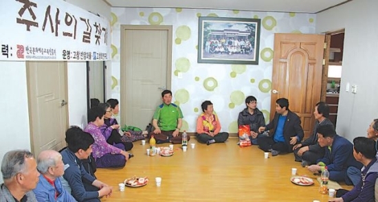 ▲ ‘추사의 길’교육 프로그램에 참여한 반암마을 사람들이 이야기를 나누고 있다.