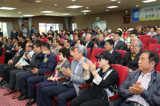 ▲ 제24회 무주읍민의 날 기념식이 열린 2일 무주읍사무소에서 참석자들이 박수를 치고 있다.