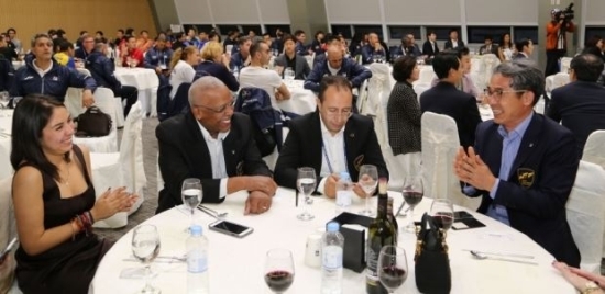 ▲ 2016년 리우올림픽에서 활동할 태권도 심판·코치의 합동캠프가 지난 5일부터 8일까지 무주 태권도원에서 열려 참석자들이 환영 만찬에서 박수를 치고 있다.