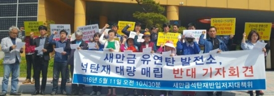 충남 보령과 서천 등 화력발전소에서 발생하는 석탄재를 새만금산업단지 매립토로 사용하려는 한국농어촌공사의 계획에 도내 시민사회단체들이 일제히 반발하고 나섰다.
