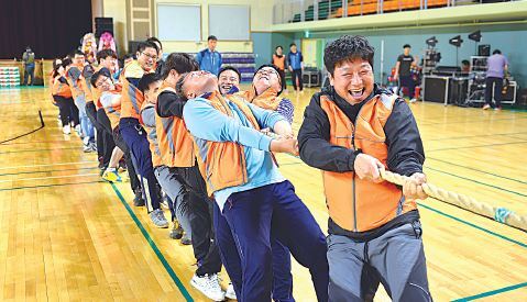 배구, 터치볼, 줄다리기 등 체육행사와 지네발 릴레이, 판 뒤집기, 럭비공 몰기 등 오락경기를 통해 협동심을 발휘하며 친목을 다졌다.