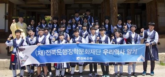 (재)전북은행 장학문화재단(이사장 김영구)은 지난 14일 전주전통문화연수원에서 도내 우수 중학생을 대상으로 ‘제1회 우리역사 바로알기’ 행사를 실시했다.