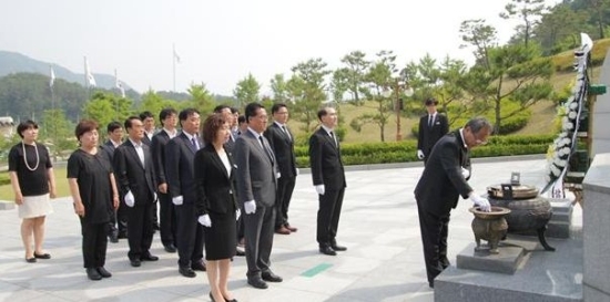 김항술 도당위원장은 이날 “순국선열과 호국영령의 애국애족의 깊은 뜻을 되새기며, 그에 대한 감사의 마음으로 헌화 및 분향을 했다”고 말했다.