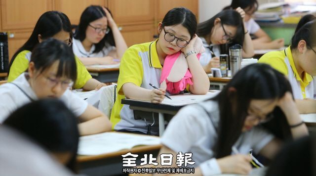 전국적으로 대학수학능력시험 모의평가가 실시된 2일 전주성심여고에서 수험생들이 문제를 풀고 있다.