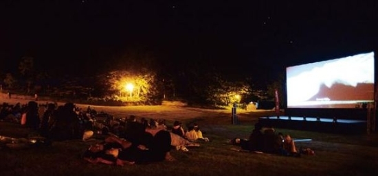 ▲ 관객들이 덕유산국립공원 대집회장에서 심야영화를 보고 있다.