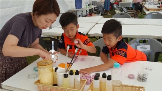 ▲ 영화제를 찾은 가족이 공방 체험을 하고 있다.