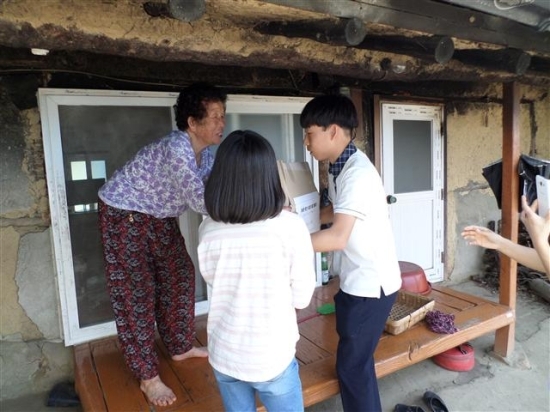 하서중 샤프론 봉사단은 최근 관내 홀몸어르신 10명을 찾아 생활용품과 간식 등을 전달했다.