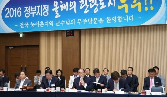 황정수 군수는 전국 농어촌 지역 군수들을 향해 “내년 6월이면 160개국에서 2000명이 넘는 태권도인들이 참가하는 2017 무주 WTF 세계 태권도선수권대회가 바로 이곳 태권도원에서 개최된다”며 “국가 브랜드와 태권도원의 위상을 높이고, 농어촌지역 발전을 위한 또 하나의 기반이 될 2017 무주대회가 성공적으로 개최될 수 있도록 관심을 가지고 성원해 달라”고 당부했다.