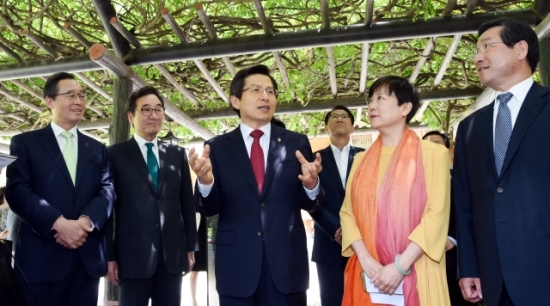 ▲ 한국시도지사협의회와 중국 인민대외우호협회가 한중 FTA 서명 1주년을 기념해 마련한 제1회 한중 지사·성장회의가 열린 8일 국무총리 오찬간담회에서 황교안 국무총리와 송하진 도지사 등 한국시도지사와 리샤오린 중국인민대외우호 협회장(사진 왼쪽에서 두번 째) 등 중국 자치구 지도자들이 이야기를 나누고 있다. 사진제공=전북도청