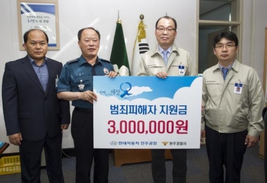 현대차 전주공장은 지난해 10월 완주경찰서와 범죄피해자 보호 및 지원을 위한 업무협약을 체결한 뒤 매년 300만원씩 지원하고 있다.