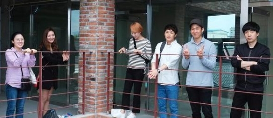 ▲ 예술단체 ‘THE 젊은’작가들이 ‘THE 젊은몰’이 들어설 동문예술의 거리 내 건물에서 포즈를 취하고 있다. 왼쪽부터 박마리아, 김요나, 유시라, 박창은, 문민, 이가립씨.