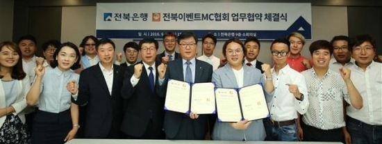 JB금융그룹 전북은행(은행장 임용택)은 16일 본점 9층 회의실에서 전북이벤트MC협회(회장 임호영)와 지역사회공헌 나눔 협약을 실시했다고 밝혔다.