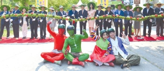 ▲ 지난 17일 고창 선운산도립공원에서 열린 ‘풍천장어와 함께하는 2016 고창 복분자와 수박축제’ 개막식에서 참석자들이 테이프를 자르고 있다.