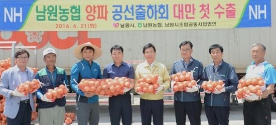 시는 21일 남원농협 선별장(육묘장)에서 ‘남원 양파’ 대만 수출 기념행사를 가졌다.