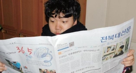 ▲ 한 학생이 전북대신문을 읽고 있다.