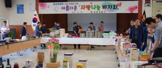 남원경찰서(서장 박훈기)는 지난 23일 경찰서 대회의실에서 범죄피해자 보호 기금을 마련하기 위한 ‘사랑 나눔 바자회’ 행사를 개최했다. 이날 바자회에는 남원서 전 직원들이 아끼는 소장품 및 생활용품 300여점을 기증했으며, 관내 업체인 이마트 남원지점, 청송편백, 인월요업, 참본, 타밀회사에서는 600여점의 물품을 기부했다.