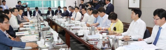 ▲ 27일 서울 국회 의원회관에서 열린 도내 국회의원·전북도 예산정책협의회에서 송하진 지사를 비롯한 여야 3당 소속 10명의 국회의원들이 2017년 국가예산 확보, 탄소법 제정 후속조치 등 도정현안 해결을 위한 정책협의회를 갖고 있다. 사진제공=전북도청